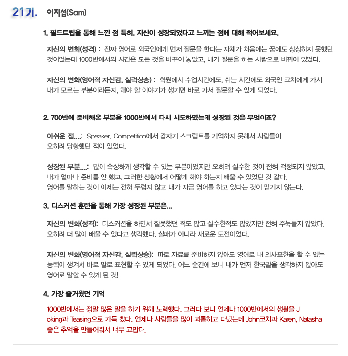 국내 집중 어학연수 21기 이지섭 6개월의 변화과정