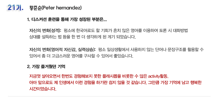 국내 집중 어학연수 21기 황준순 6개월의 변화과정