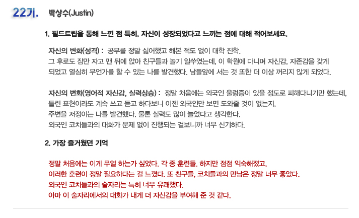 국내 집중 어학연수 22기 박상수 6개월의 변화과정