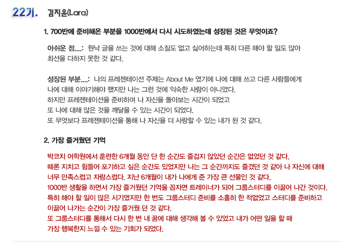 국내 집중 어학연수 22기 김지윤 6개월의 변화과정