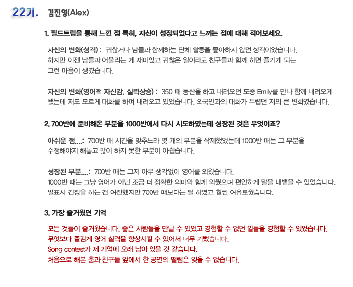 국내 집중 어학연수 22기 김진영 6개월의 변화과정