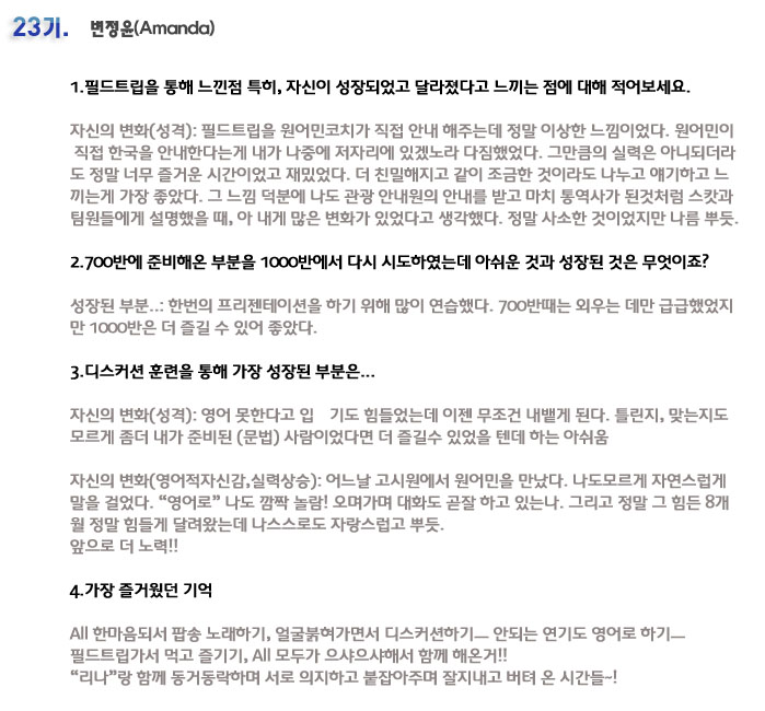 국내 집중 어학연수 23기 변정윤 6개월의 변화과정