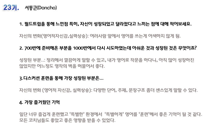 단기집중 국내어학연수 23기 서동근 6개월의 변화과정