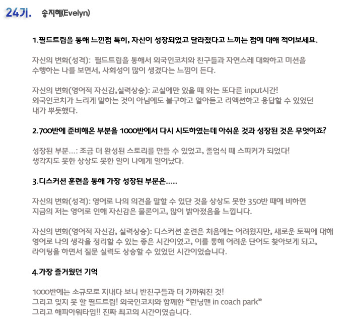 단기 집중 국내 어학연수 24기 송지혜 6개월의 변화과정