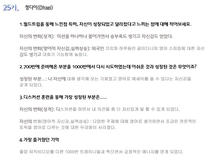 단기 집중 국내 어학연수 25기 정다이 6개월의 변화과정