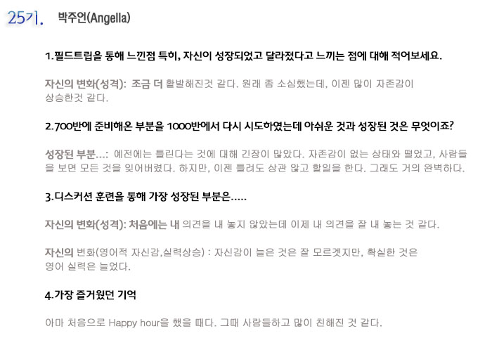 단기 집중 국내 어학연수 25기 박주언 6개월의 변화과정